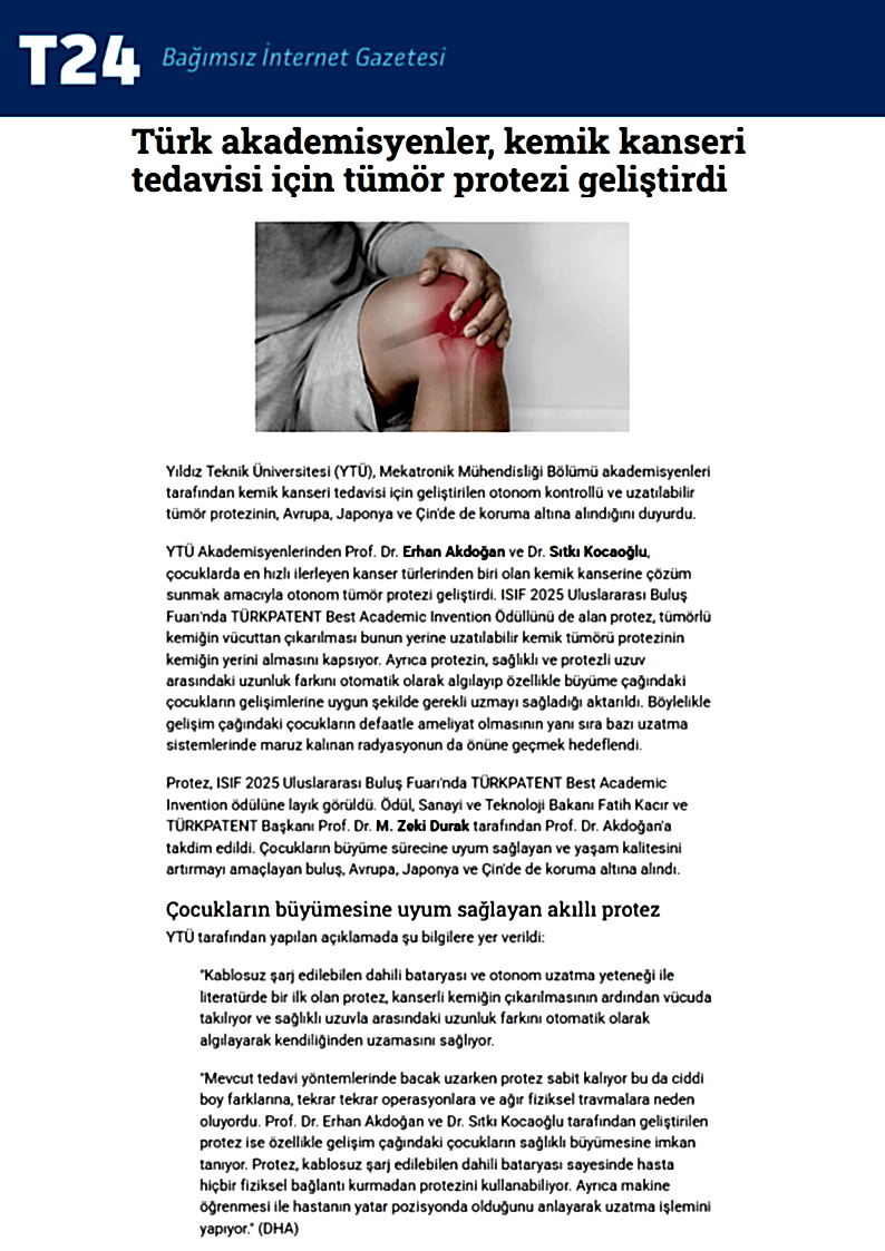 YTÜ’nün TEKNOFEST Şampiyonu Otonom Tümör Protezi Habertürk’te